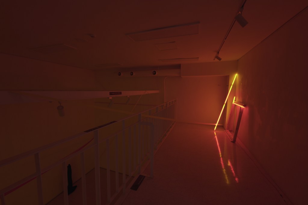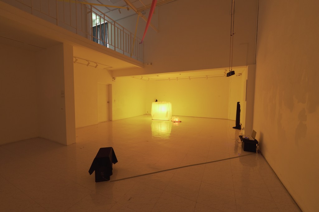 지하 공간 구석에 <INCOMPLETE CUBE & CONTEMPORARY LIGHT> 는 권은미 작가의 가장 최근 작업이다. 노란 1M3 큐브를 벗어나 반짝이는 붉은 빛은 흡사 살아있는 생명체와 같다. 정육면체는 완벽과 통제를 향한 욕망을, 넘쳐 흘러 나오는 빛덩어리들은 구조를 벗어나고자 하는 저항을 상징하며, 노란 간이봉투에 담겨져 간신히 숨어있는 빛의 형상들은 작지만 가치있는 피조물로 개별 양상들은 귀결되기 이전의 과정이자 대안적인 방향이다. 이 설치는 권은미 작가의 기존작업 ILLUSION (2013)에 내재해 있던, 우리가 가지는 사고방식의 형성과 흐름에 관한 질문을 이어가고 있다.